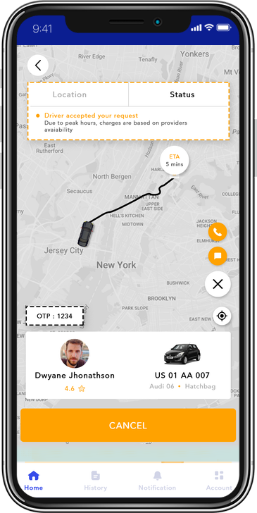 In-App NotificationsUsers are notified about their upcoming rides or orders using the instant push notifications. Other details, such as offers and discounts, app updates, and more, can also be sent.