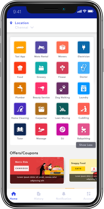 Our Gojek clone is a multi-service app that includes on-demand services like taxi, food delivery, grocery delivery, car repairs, massage, babysitting, towing, etc. Here’s how our app rolls out to render these services seamlessly.